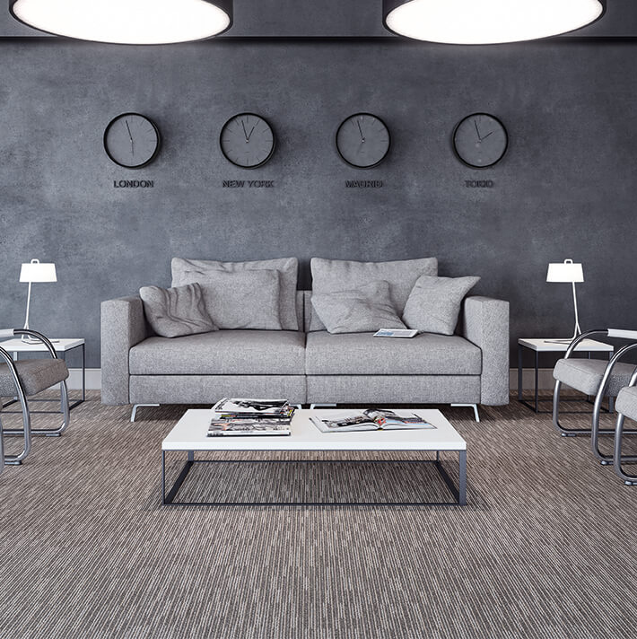 Fabricado com fios Antron Lumena® BCF 100% SDN. O carpete em rolo é resistente ao tráfego pesado, não solta pelos, não inflamável, é antimicrobiano e fácil de limpar, o que garante excelente desempenho em áreas comerciais de grande circulação.